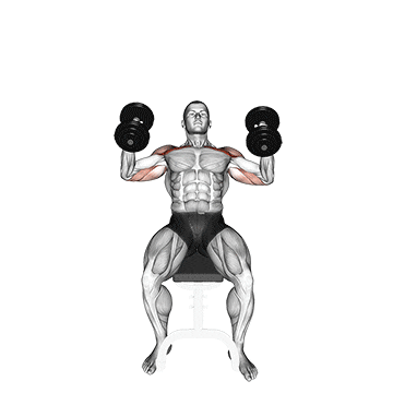 2. Sit on the bench with a dumbbell in each hand, and position them at shoulder level with a neutral grip (palms facing each other).