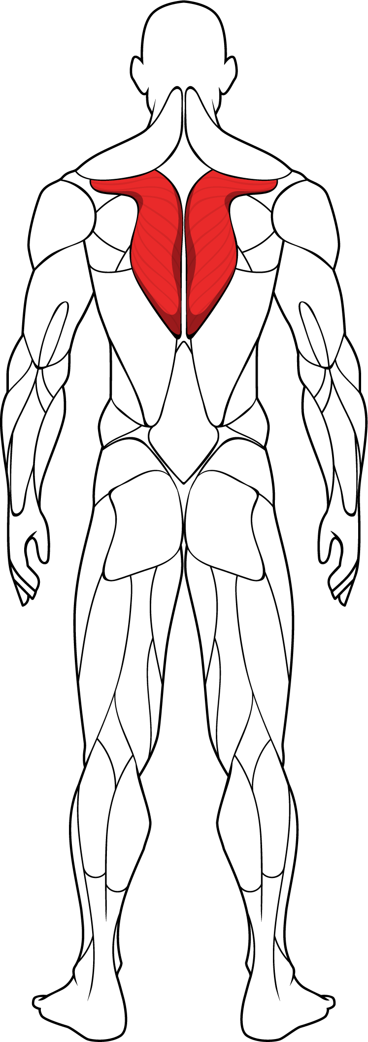Rhomboids: The rhomboid muscles consist of the rhomboid major and rhomboid minor, which are located deep to the trapezius muscle. These muscles originate from the spinous processes of the thoracic vertebrae and insert into the medial border of the scapula. The rhomboids are primarily responsible for retracting the shoulder blades (bringing them closer together) and downwardly rotating them.